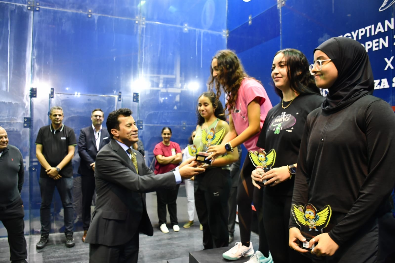 وزير الشباب والرياضة يشهد ختام منافسات بطولة مصر الدولية للاسكواش للناشئين والناشئات