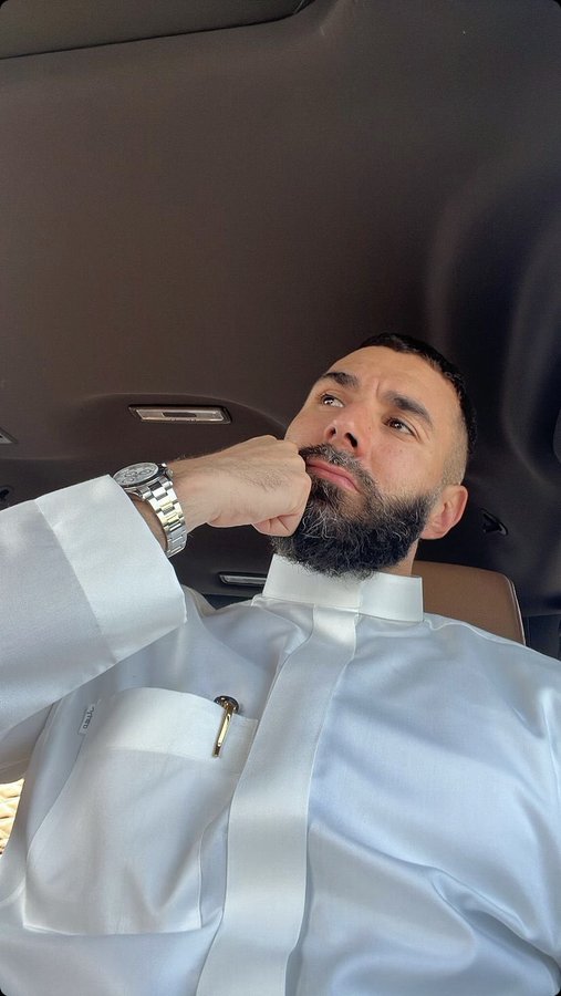 وعلق كريم بنزيما على إرتداء "الجلابية" البيضاء قائلاً: "الثوب السعودي أنيق".