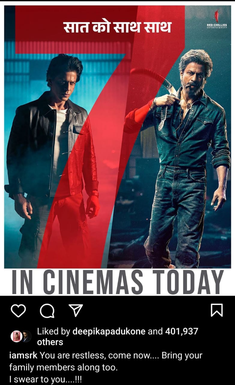 ينطلق اليوم العرض الأول لفيلم شاروخان الجديد “ Jawan ” بجميع دور العرض السينمائية بالهند، وذلك من خلال منشور نشره شاروخان على صفحته الرسمية عبر موقع تبادل الصور و الفيديوهات “ انستجرام ” معلنا فيه أن الفيلم أصبح متاح و متوفر بجميع السينما بالهند اليوم .
