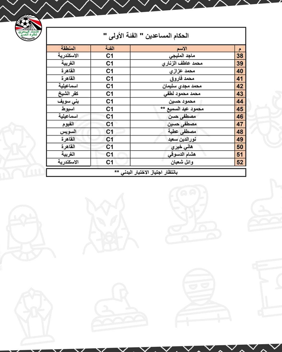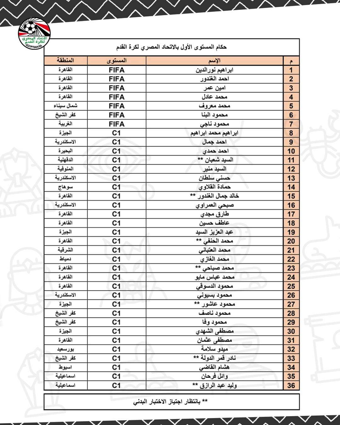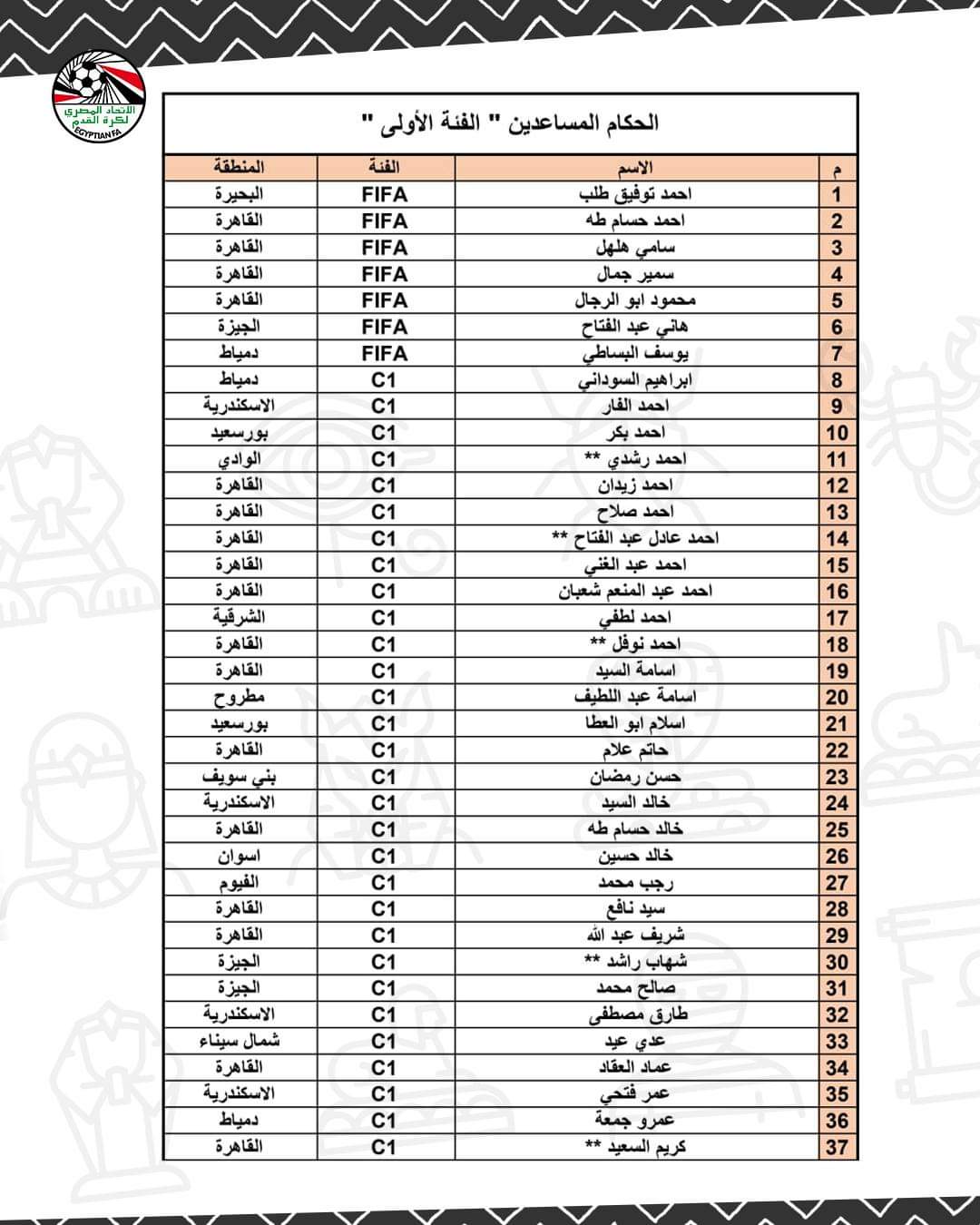 أعلن اتحاد الكرة المصري برئاسة جمال علام عن قائمة حكام التصنيف الأول لدوري النيل موسم 2023-2024.