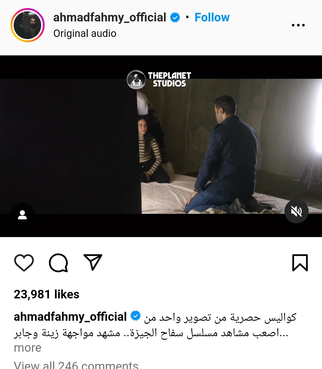 علق أحمد فهمي على الفيديو قائلا: "كواليس حصرية من تصوير واحد من اصعب مشاهد مسلسل سفاح الجيزة.. مشهد مواجهة زينة وجابر".