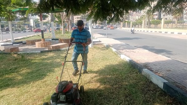 رفع كفاءة المسطحات الخضراء بشارع أم كلثوم ومحمد علي والطريق الدائري بالإسماعيلية