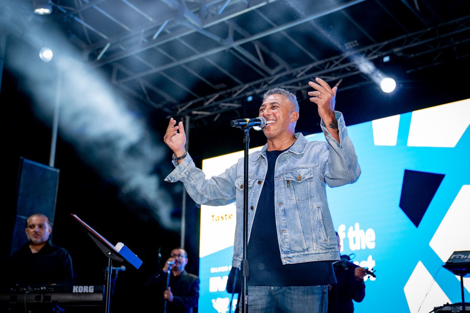 وعند إطلالة العبداللات على المسرح، استقبله الجمهور بعاصفة من التصفيق، ليقدم مجموعة كبيرة من أغانيه العاطفية القديمة والجديدة، والتي أشعل بها المسرح، مما أثرى الحفل وأشعل الحماس وسط أجواء من الفرح والبهجة، وردد معه الجمهور كلمات أغنياته.