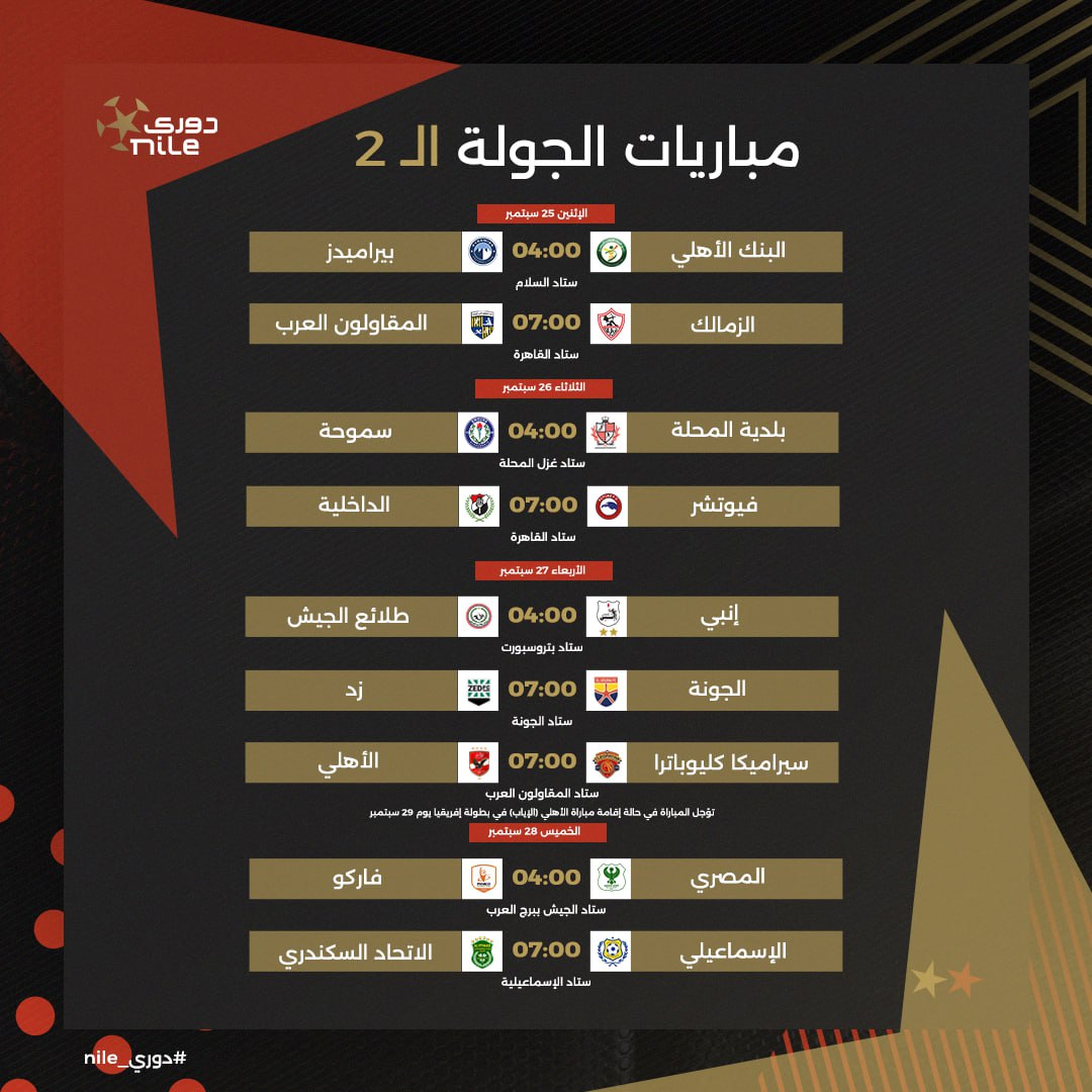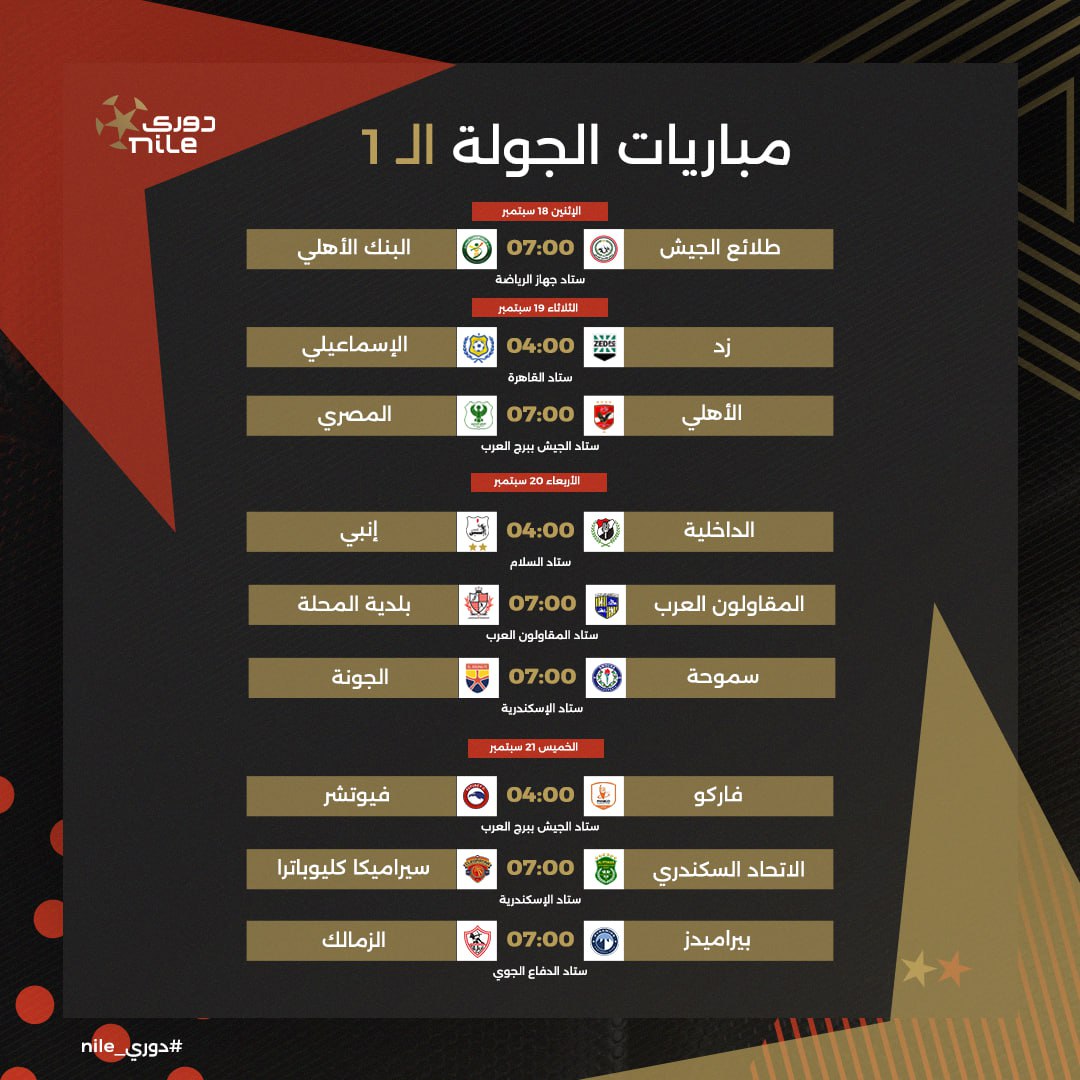 وفي بيان رسمي أصدرته رابطة الأندية، أعلنت من خلاله مواعيد منافسات مباريات الدوري الممتاز، المعروف باسم دوري النيل في نسخته الحالية.