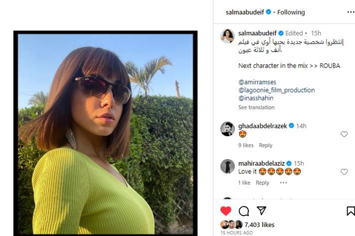 نشرت سلمى أبو ضيف صورة لها من النسخة الجديدة غبر حسابها على بموقع الصوروالفيديوهات انستجرام ، وعلقت عليها "إنتظروا شخصية جديدة بحبها أوي في فيلم أنف و ثلاثة عيون.. روبا".