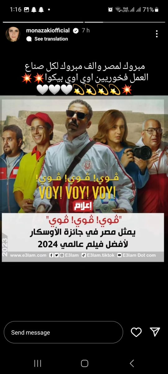 بعد إختياره للأوسكار.. منى زكي تهنئ صناع فيلم "فوي فوي فوي"