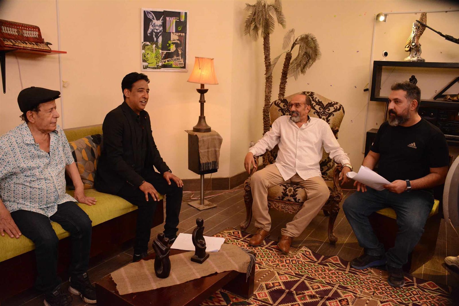 بالصور.. أحمد صيام وحامد مرزوق فى بلاتو مسلسل "بلا فلتر"