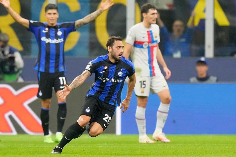 انتر ميلان ..وتأتى ضربة جزاء للانتر لزيادة الحفلة التهديفية ويسجل منها اللاعب هاكان تشالهان الهدف الرابع ويسكنها الشباك.