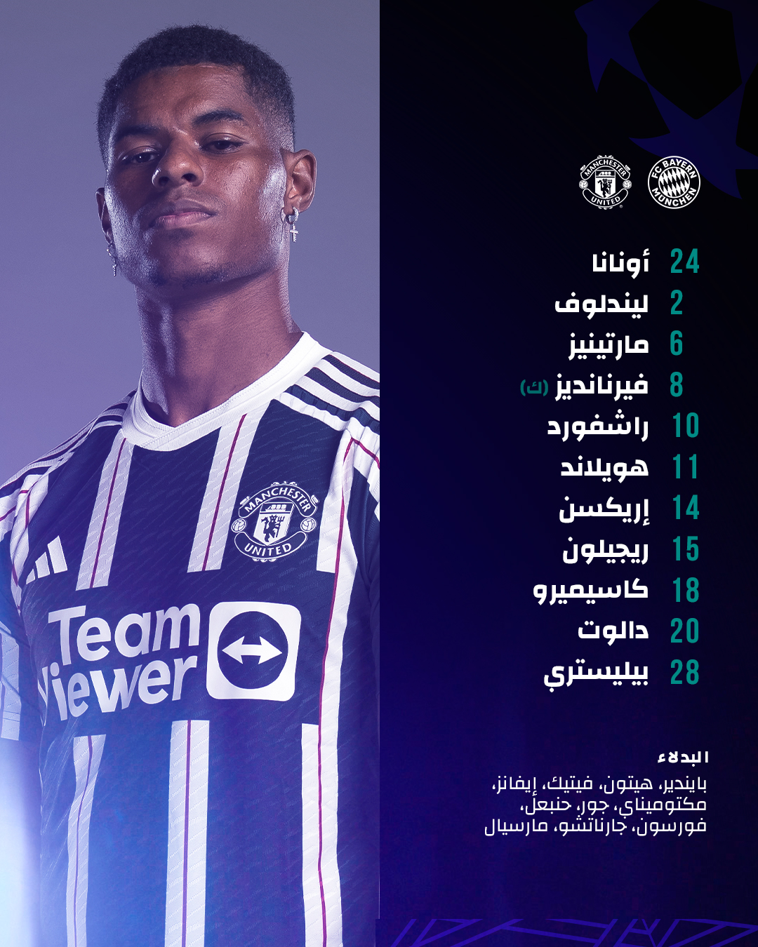 راشفورد يقود تشكيل مانشستر يونايتد أمام بايرن ميونيخ