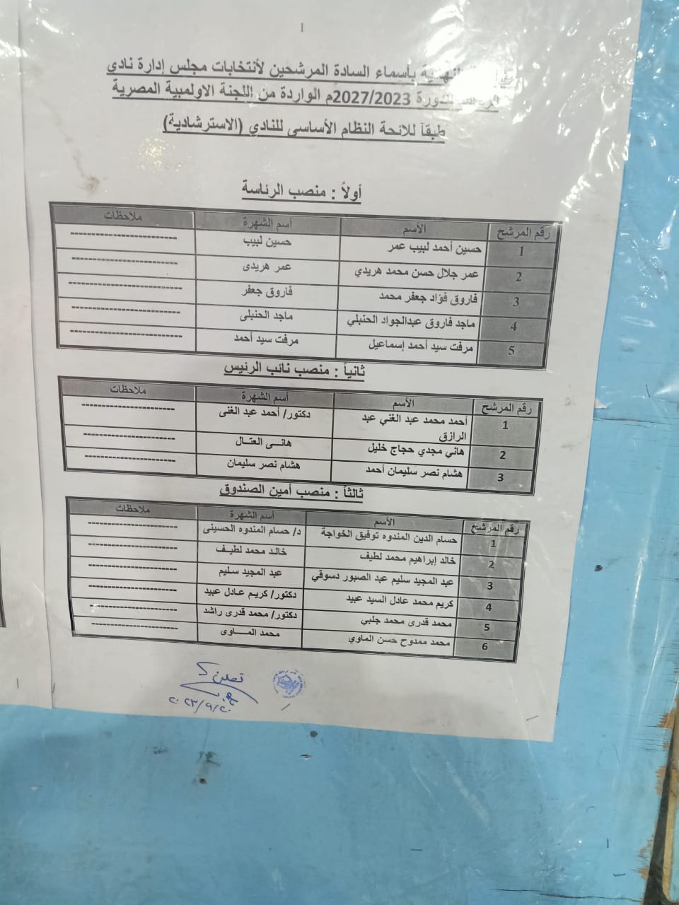 وبادرت الإدارة التنفيذية لنادي الزمالك بنشر كشوف المرشحين لانتخابات النادي بعد اعتمادها من اللجنة الأولمبية المصرية، حيث تم وضع كشوف المرشحين المعتمدة بلوحة الإعلانات الرسمية الموجودة داخل مقر القلعة البيضاء.