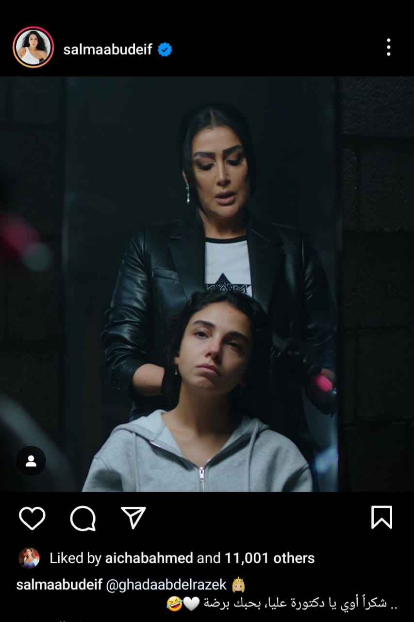 شاركت الفنانة سلمى أبو ضيف بصورة لها مع الفنانة غادة عبدالرازق من كواليس مسلسل"حدث بالفعل"،وذلك عبر حسابها الخاص بموقع تبادل الصور والفيديوهات"انستجرام"