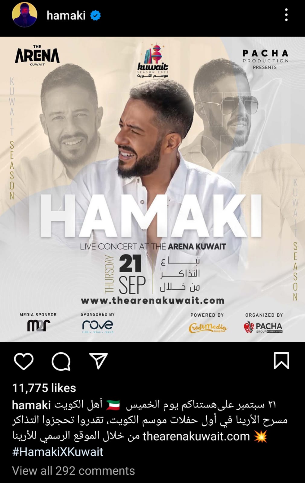 كان حماقي قد نشر صورة البوستر الرسمي للحفل على صفحته الرسمية عبر موقع تبادل الصور و الفيديوهات “ انستجرام ” و علق قائلا “ أهل الكويت، هستناكم يوم الخميس 21 سبتمبر على مسرح الأرينا في أول حفلات موسم الكويت ” .