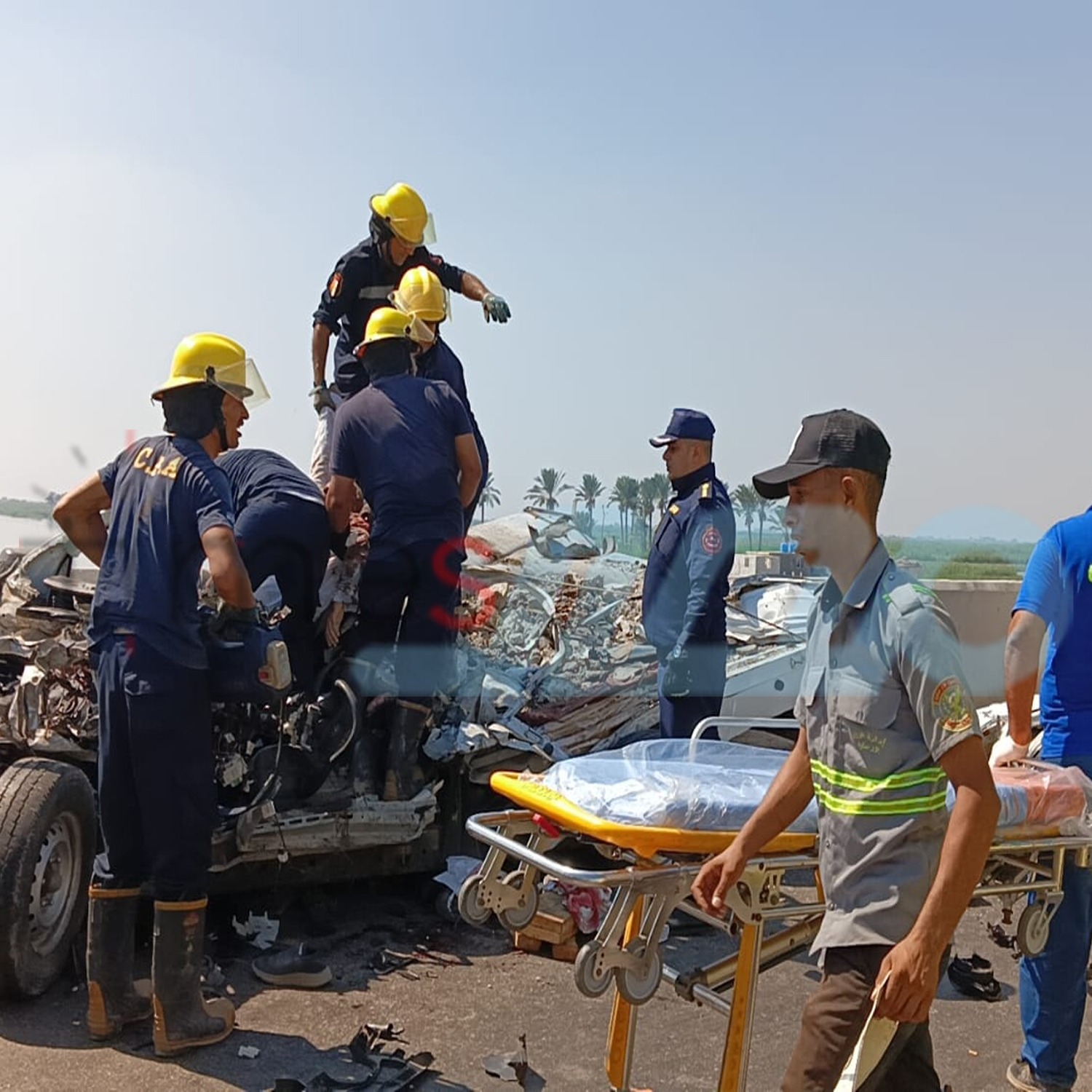 وترأس العميد شريف العربي مدير إدارة الحماية المدنية فريقًا من الضباط والجنود، وتمكنوا من الوصول لموقع الحادث خلال دقائق من البلاغ، وكانت السيارة الربع نقل أسفل المقطورة، وكذلك يتواجد شخصين في السيارة الربع نقل، وعلي الفور تم الدفع بـ لوادر ونجحت جهود اخراج السياة، كما نجحت الأطقم المدربة في انتشال الجثمانين من داخل السيارة التي تهشمت عليهم، وجارٍ نقلهما للمشرحة تحت تصرف جهات التحقيق.