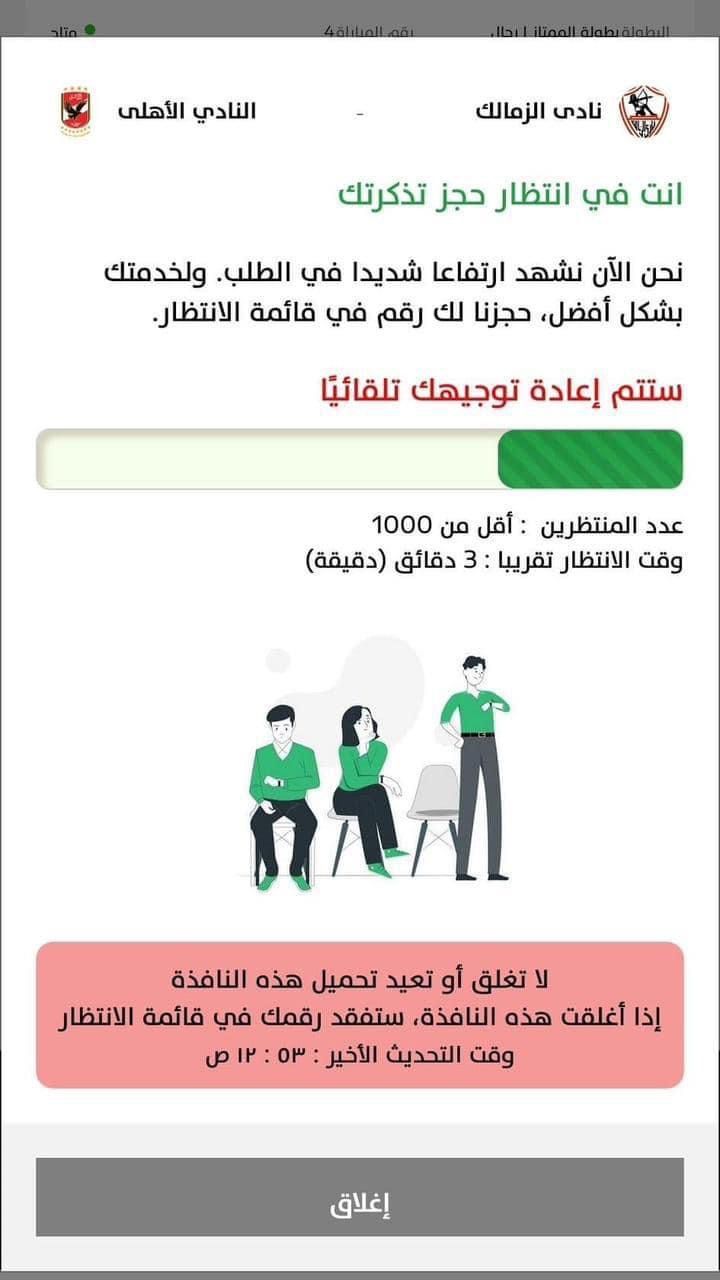 كانت شركة تذكرت في إبريل الماضي طبقت في إطار الشفافية التي تتبعها في تسهيل مهمة طرح التذاكر الخاصة بالمباريات خلال الفترة المقبلة تقرر تطبيق خاصية غرف الانتظار الافتراضية عقب طرح التذاكر في كل مباراة .