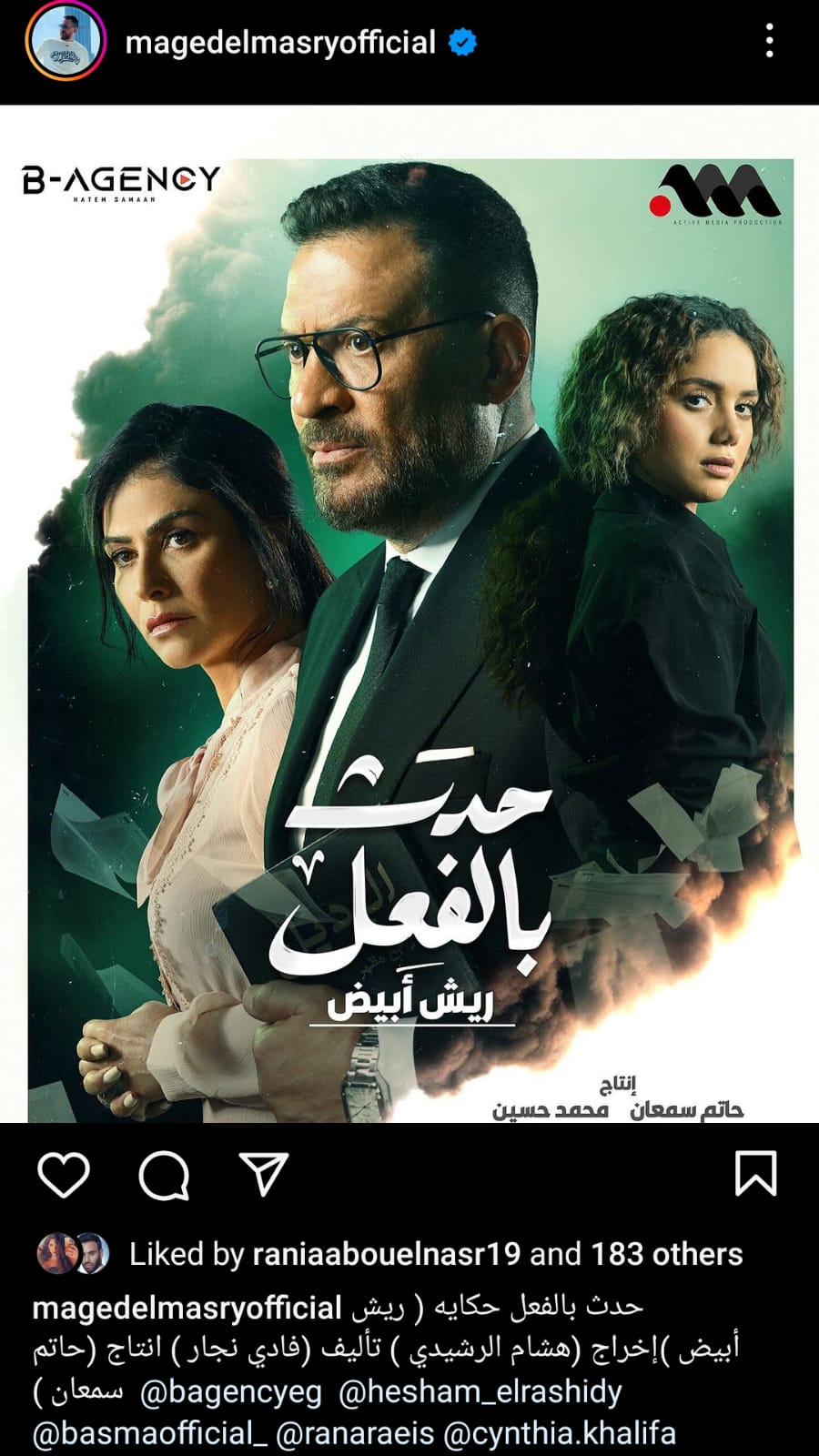 روج الفنان ماجد المصري منذ قليل للحكاية الثانية من مسلسل “ حدث بالفعل ”، و هي حكاية “ ريش أبيض ”، و ذلك من خلال صورة نشرها الفنان ماجد المصري على صفحته الرسمية عبر موقع تبادل الصور و الفيديوهات “ انستجرام ” .