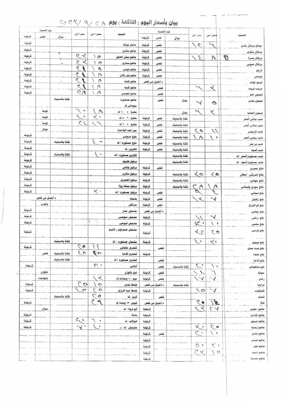 من جانب آخر ينشر “مصر تايمز”، بيان بأسعار كافة الخضروات والفاكهة اليوم 28 سبتمبر 2023، وفق شعبة الخضروات والفاكهة بالغرف التجارية، وكانت أسعار البصل قد وصلت لمستويات غير مسبوقة في الفترة الأخيرة، وقامت عليه وزارة الصناعة بمنع تصدير البصل بداية من أكتوبر المقبل، الأمر الذي ساهم في انخفاض اسعارها، وتوافرها بالاسواق بأسعار معقولة مقارنة بما سبق.