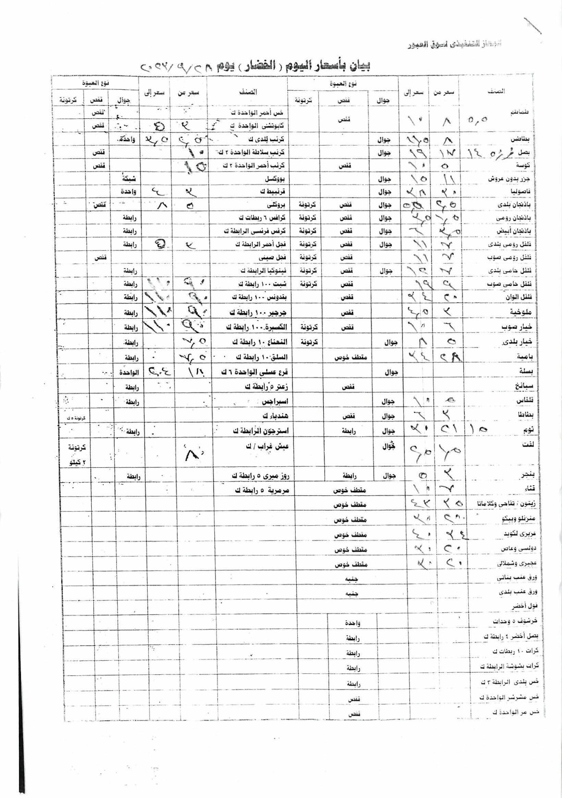 قال حاتم النجيب نائب رئيس شعبة الخضروات والفاكة بالغرف التجارية، أن أسعار الطماطم أنخفضت لتصل من 10 إلي 15 جنيهاً بالأسواق، مشيراً إلي أنخفاض أسعار البصل ليصل من 18 إلي 23 جنيهاً بالأسواق.