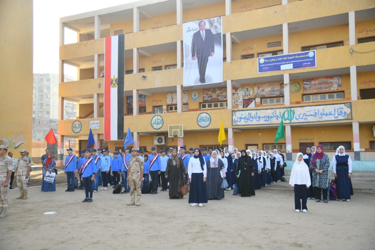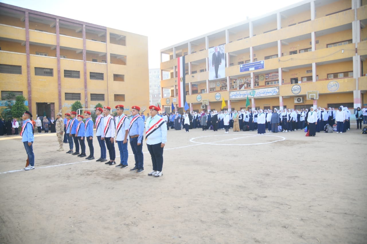 وانتظم الطلاب في أرض الطابور في الصفوف لحضور أول أيام انطلاق الدراسة، وحمل الطلاب أعلام مصر في أيديهم والتزموا بالزي المدرسي الموحد.