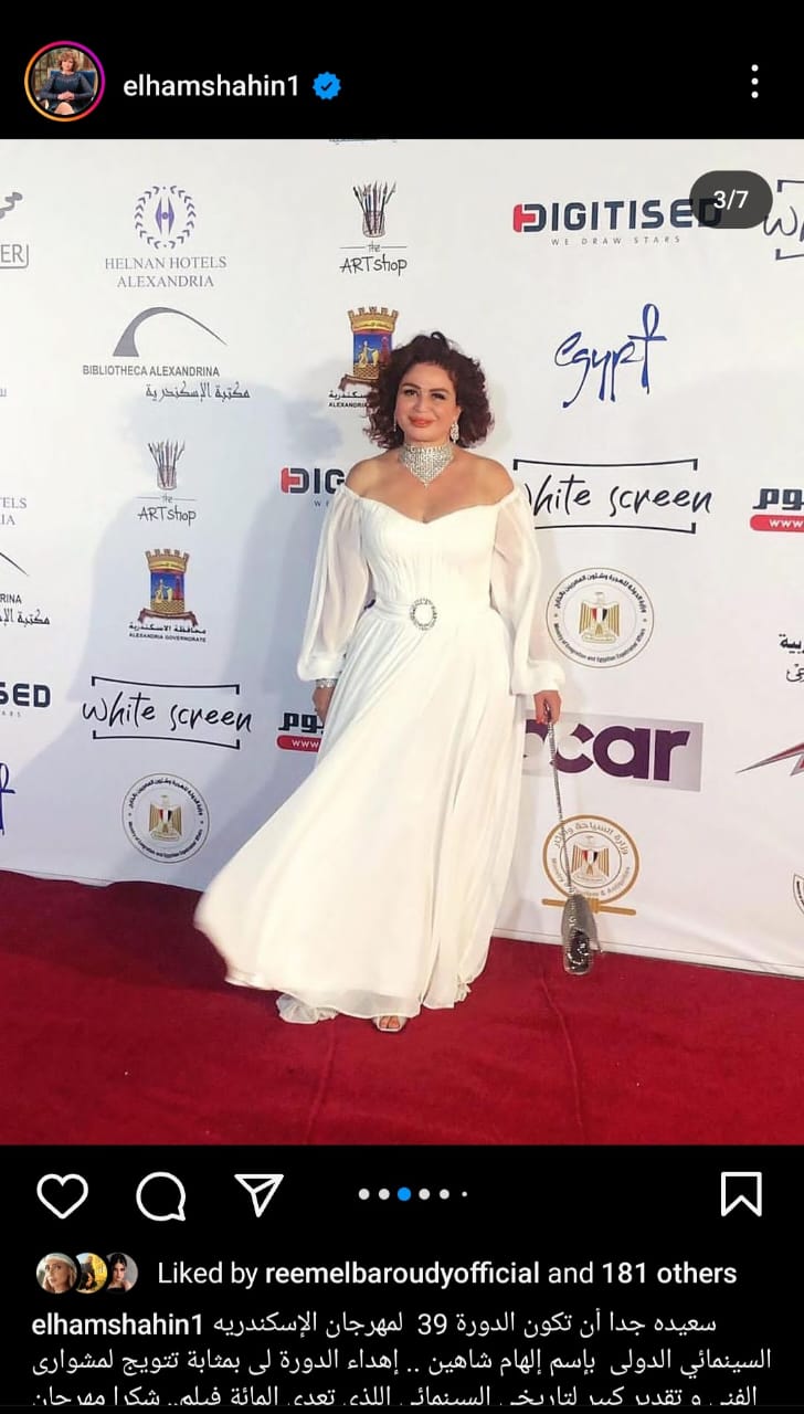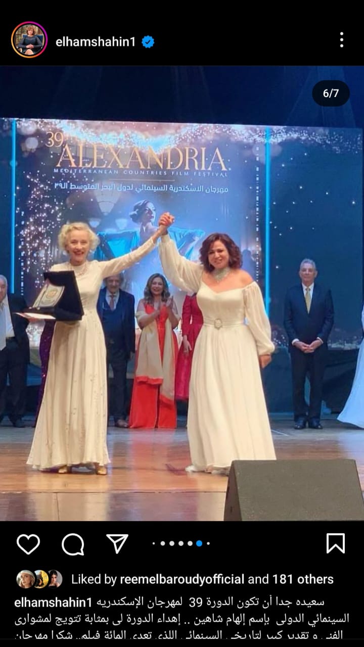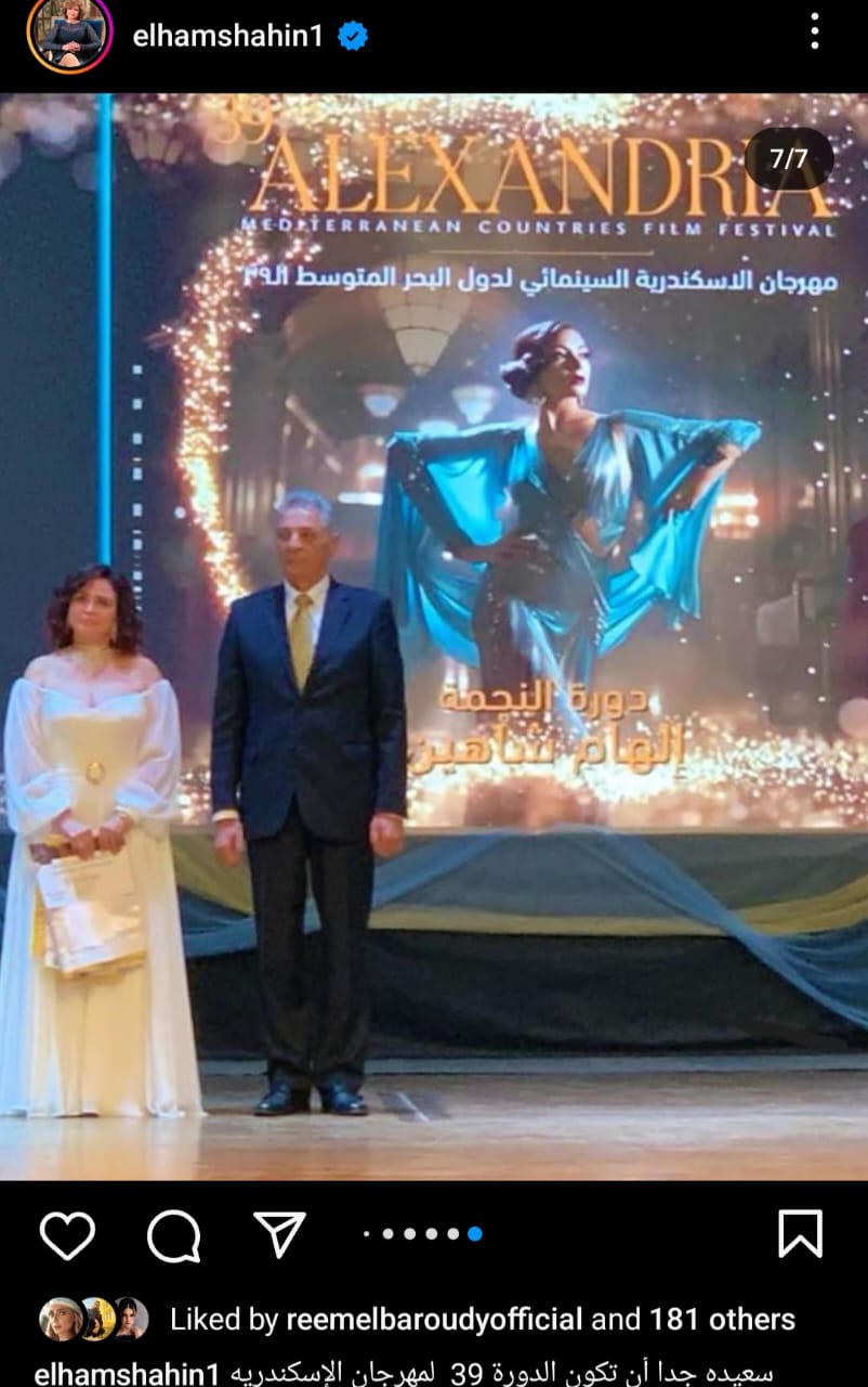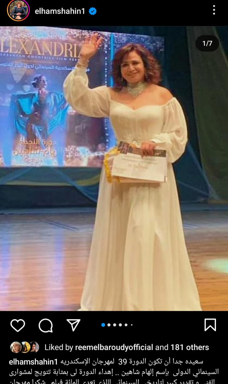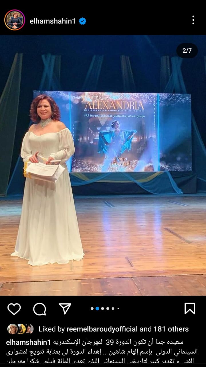 إحتفلت الفنانة إلهام شاهين بإطلاق إسمها على مهرجان الإسكندرية السينمائي بمشاركة جمهورها بصورة لها أثناء تكريمها من المهرجان،وذلك عبر حسابها الخاص بموقع تبادل الصور والفيديوهات"انستجرام".