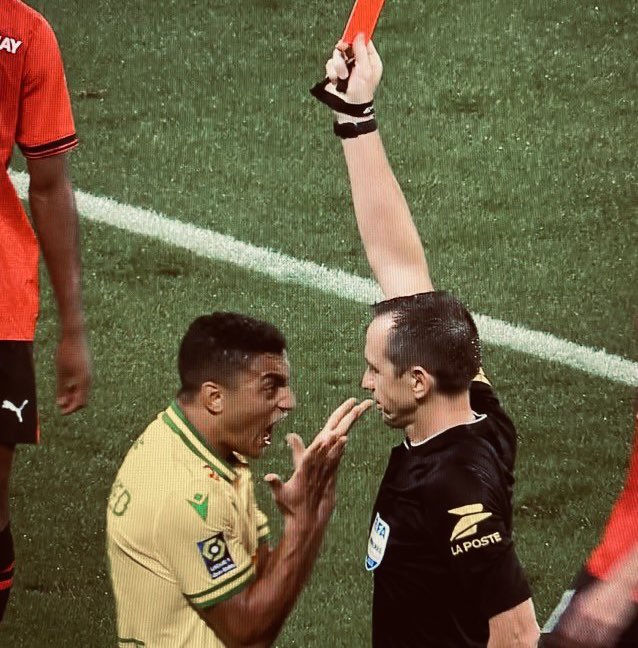 نانت ..فيما علق الأخير، مصطفى محمد يُعقد الأمور أكثر على فريقه نانت بعد تلقيه بطاقتين بسذاجة، أرتكب خطأ (صحيح) تم إحتسابه، أحتج على القرار بشكل مُبالغ ثم تلقى بطاقتين وطُرد.