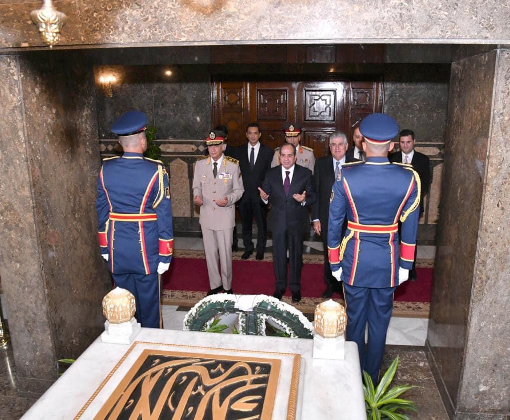 الرئيس السيسي يضع إكليلاً من الزهور علي نصب شهداء القوات المسلحة في ذكرى انتصارات أكتوبر