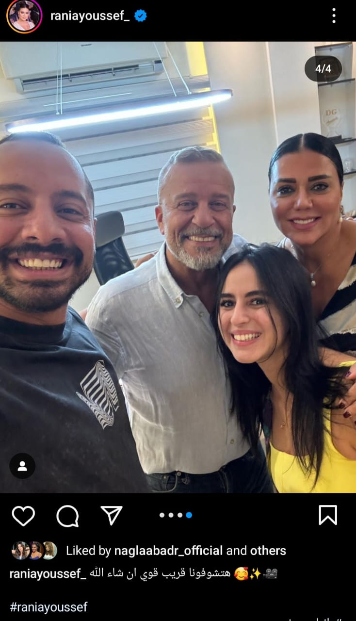 شوقت الفنانة رانيا يوسف جمهورها بعمل فني جديد مع الفنان شريف منير حيث شاركت بعدة صورا تجمع بينهما مع فريق العمل حيث ظهر في الصورة الفنان عمرو وهبة ،وذلك عبر حسابها الخاص بموقع تبادل الصور والفيديوهات"انستجرام".