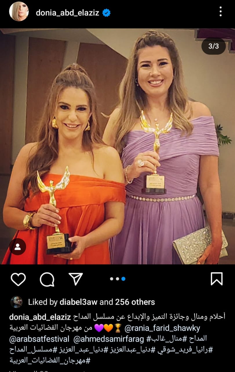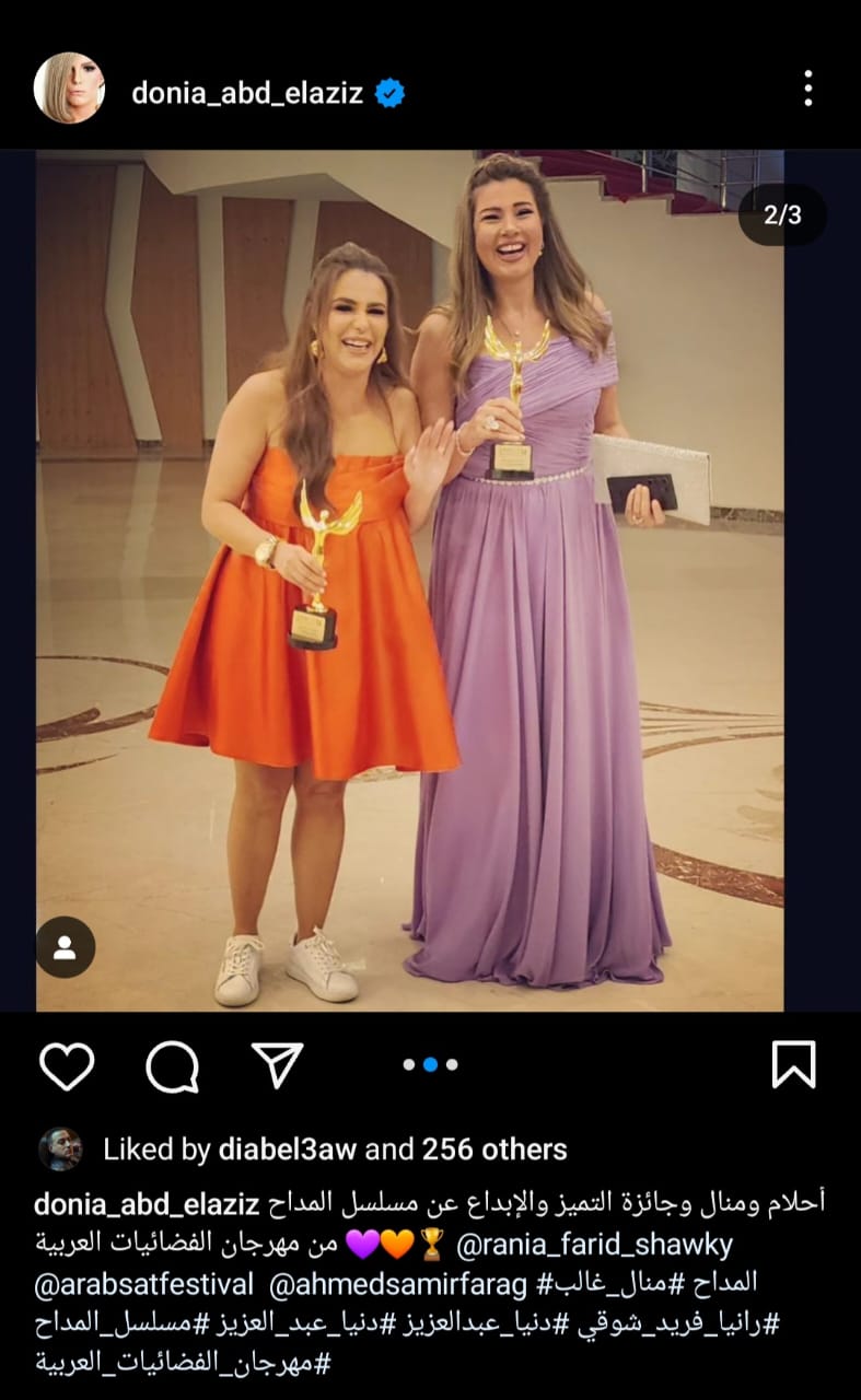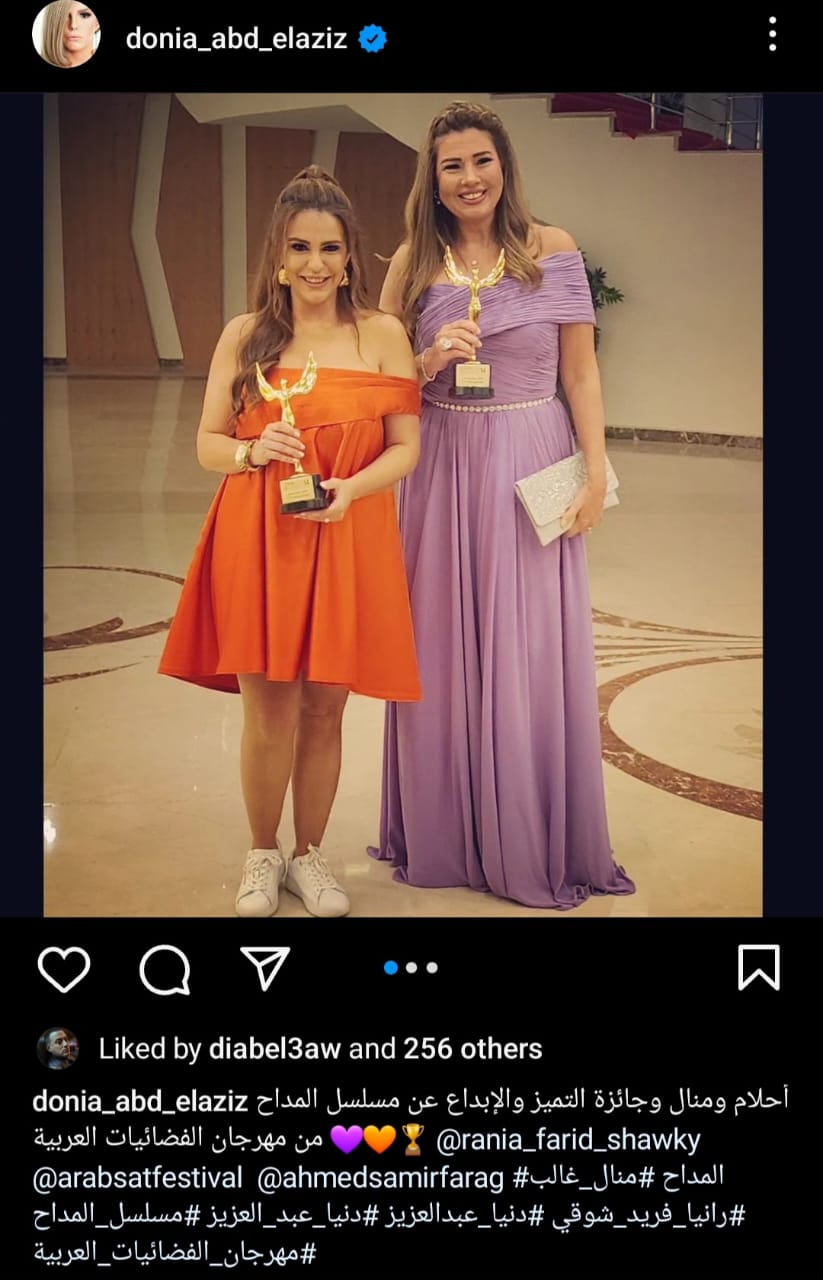 علقت دنيا قائلة"أحلام ومنال وجائزة التميز والإبداع عن مسلسل المداح من مهرجان الفضائيات العربية".