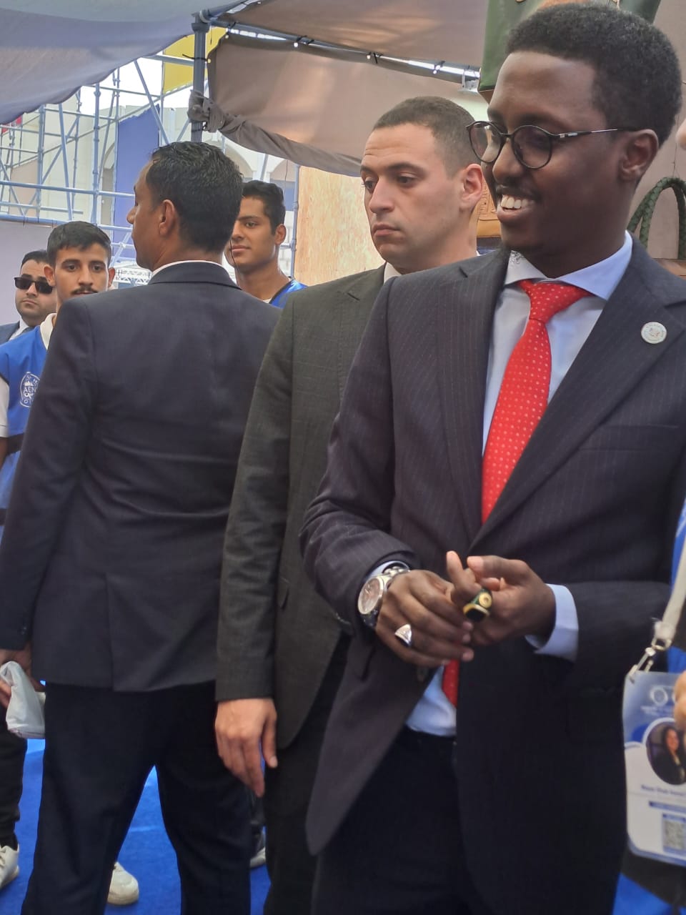 ورافق الوزير الصومالي كل من عبدالرحيم ورسمة ديرية المدير العام، فهد علي حسن المستشار، علي عبدي محمد رئيس اتحاد الصومال لكرة القدم، وكان في استقبال الوفد منال جمال وكيل الوزارة رئيس الإدارة المركزية لتمكين الشباب بوزارة الشباب والرياضة، نانيس الناقورى مدير عام الإدارة العامة للمبادرات الشبابية.