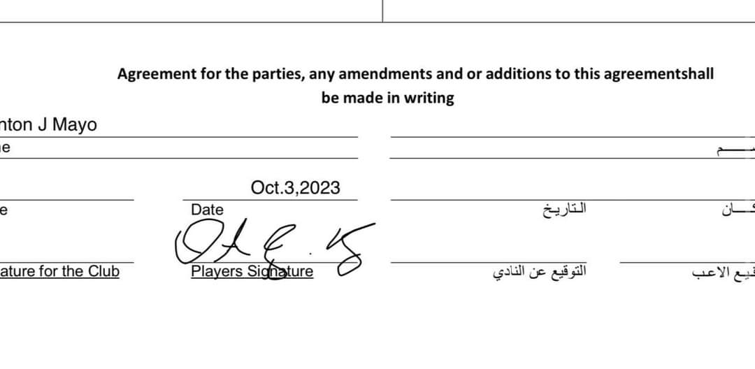 وضم نادي الزمالك المحترف الأمريكي أوجي مايو لمدة موسم واحد، على أن يبدأ التعاقد بداية شهر أكتوبر 2023 حتى 30 أبريل 2024.