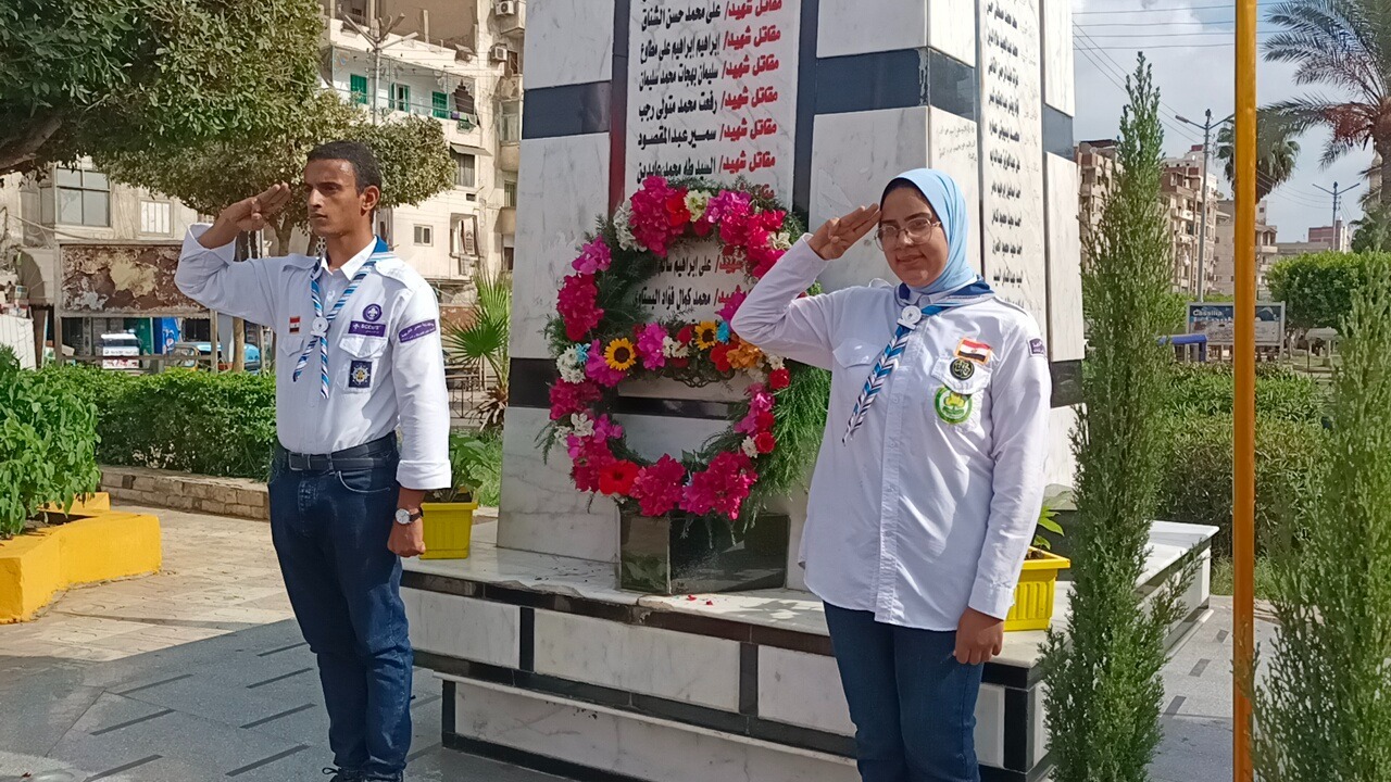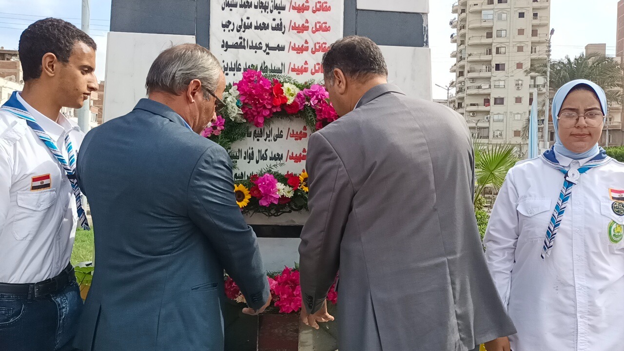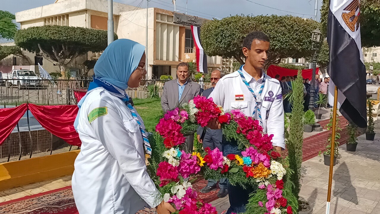 وبدأت الاحتفالية بمراسم وضع إكليل من الزهور وعزف سلام الشهيد بمشاركة مجموعات ألفا الكشفية والإرشادية بحديقة الاسرة والطفولة بقيادة القائد شوقى سيف قائد المجوعات، بمشاركة الأهالى والمواطنين والإعلاميين والصحفيين، وإذاعة الأغاني الوطنية.