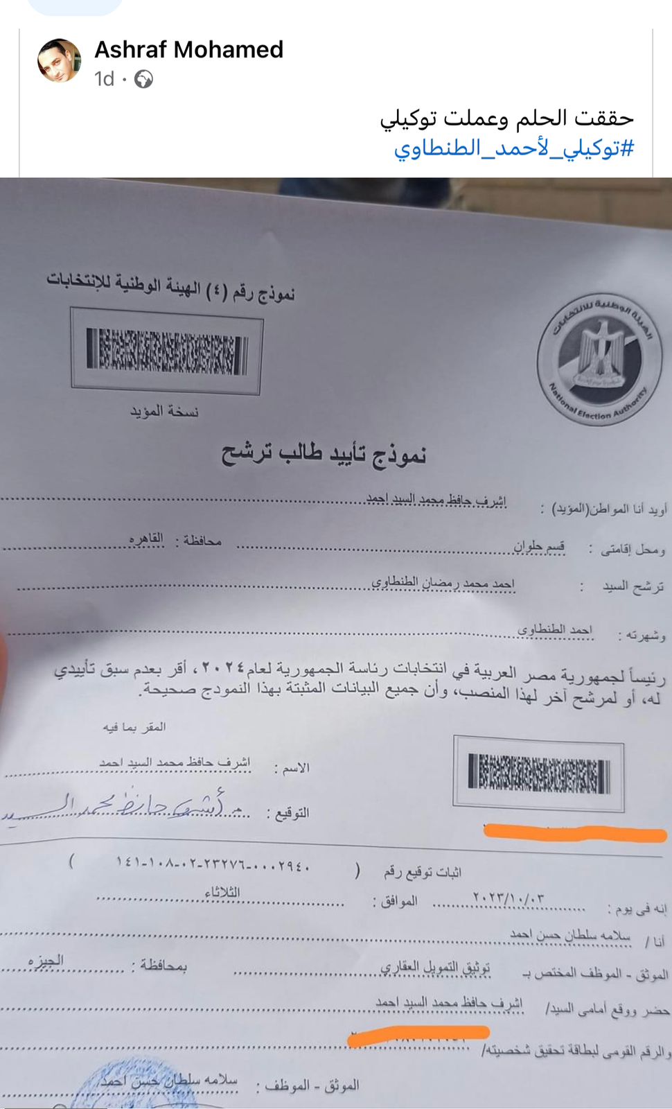 جاءت صور مؤيديه لتكشف كذبته ، حيث نشر عدد من مؤيديه صور لهم بعد عمل التوكيلات له ومنهم من أكد بنفسه أن حرر التوكيل بكل سهولة وليس كما ادعى أحمد الطنطاوى بأن هناك عواقب تواجه مؤيديه.
