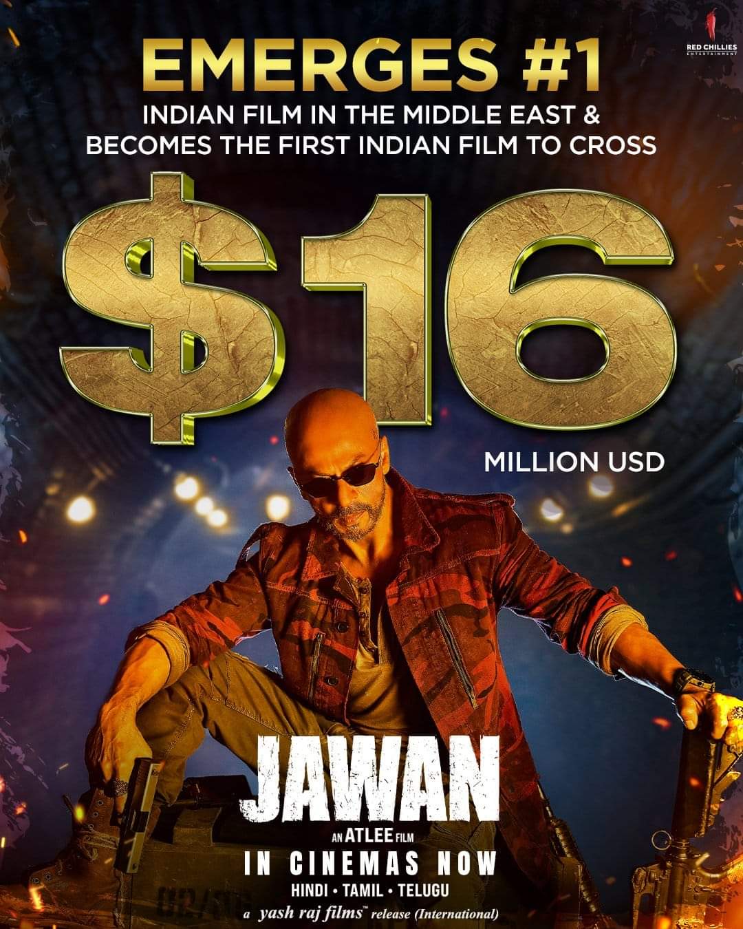 يستمر فيلم “ Jawan ” في تحقيق نجاح و اقبال جماهيري ضخم منذ أن تم عرضه، حيث استطاع الفيلم أن يحقق 16 مليون دولارا بالشرق الأوسط، حيث يعد فيلم “ Jawan ” أول فيلم هندي يتخطى هذا الرقم بالشرق الأوسط .