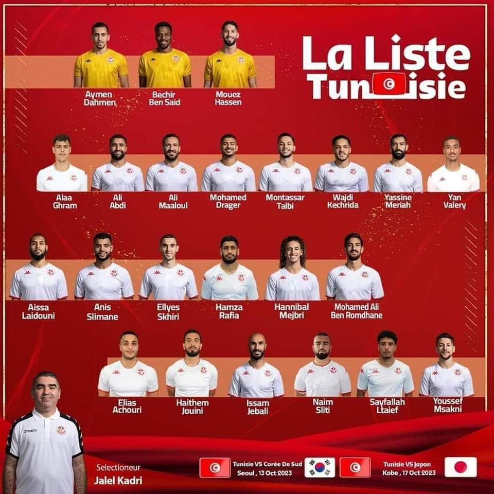 وجاءت قائمة منتخب تونس لمواجهة كوريا الجنوبية واليابان كالتالي: