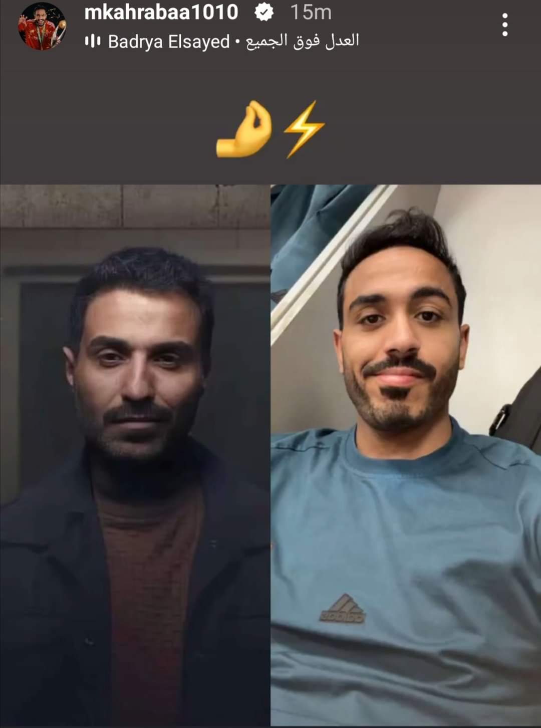 ونشر كهربا عبر ستوري انستجرام صوره له بجانب الممثل احمد فهمي من مسلسل سفاح الجيزة.