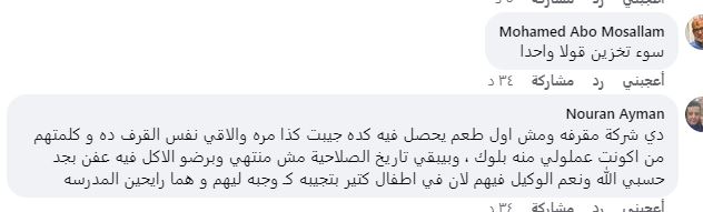 وتفاعل معها عدد من المواطنين وهناك من قال" دي شركة مقرفه ومش اول طعم يحصل فيه كده جيبت كذا مره والاقي نفس القرف ده و كلمتهم من اكونت عملولي منه بلوك ، وبيبقي تاريخ الصلاحية مش منتهي وبرضو الاكل فيه عفن بجد حسبي الله ونعم الوكيل فيهم لان في اطفال كتير بتجيبه كـ وجبه ليهم و هما رايحين المدرسه".