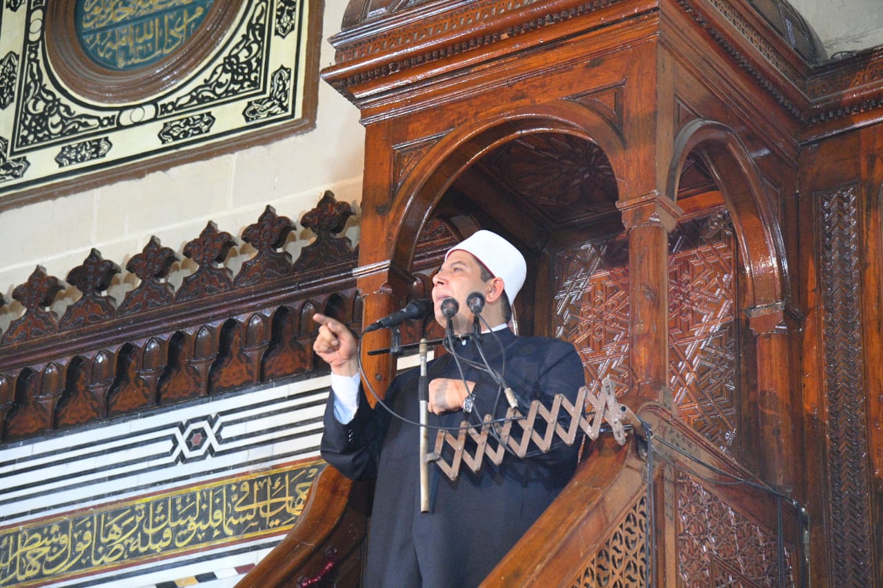 وتحدث الخطيب عن توافق مفهوم الانتماء للوطن، مطالبا المصلين بحب الوطن والإخلاص في العمل، مؤكدا على أن الله- عز وجل- نصر الجيش المصري في حرب السادس من أكتوبر لأن هذا الجيش العظيم أخذ بأسباب النصر، وأول هذه الأسباب التي أدركتها وتمسكت بها قواتنا المسلحة، هو الإيمان بالله- عز وجل- واليقين بقدرته.