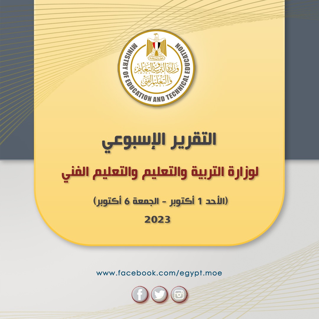 ننشر التقرير الأسبوعي لوزارة التربية والتعليم من الأحد 1 أكتوبر حتى الجمعة 6 أكتوبر