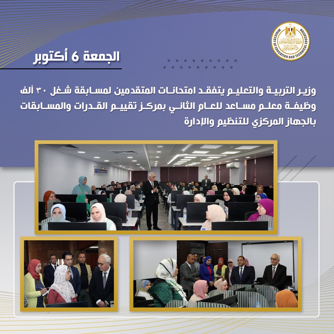 وقد أشاد وزير التريبة والتعليم بالدور الكبير الذي يقوم به الجهاز المركزي للتنظيم والإدارة في إعداد وإدارة منظومة المسابقات المركزية، وحوكمتها الشديدة التي تضمن اختيار أفضل العناصر المتقدمة لشغل وظيفة معلم مساعد وهي المهنة السامية التي تسهم في تشكيل وعي وفكر ثروتنا من الموارد البشرية.