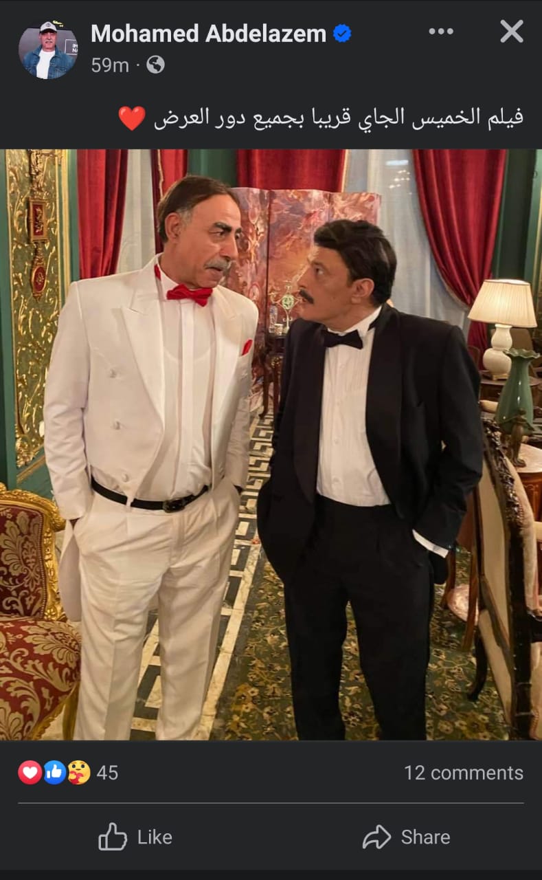 نشر الفنان محمد عبد العظيم صورة تجمع مع الفنان عمرو عبد الجليل و علق قائلا “ فيلم الخميس الجاي .. قريبا بجميع دور العرض ” .