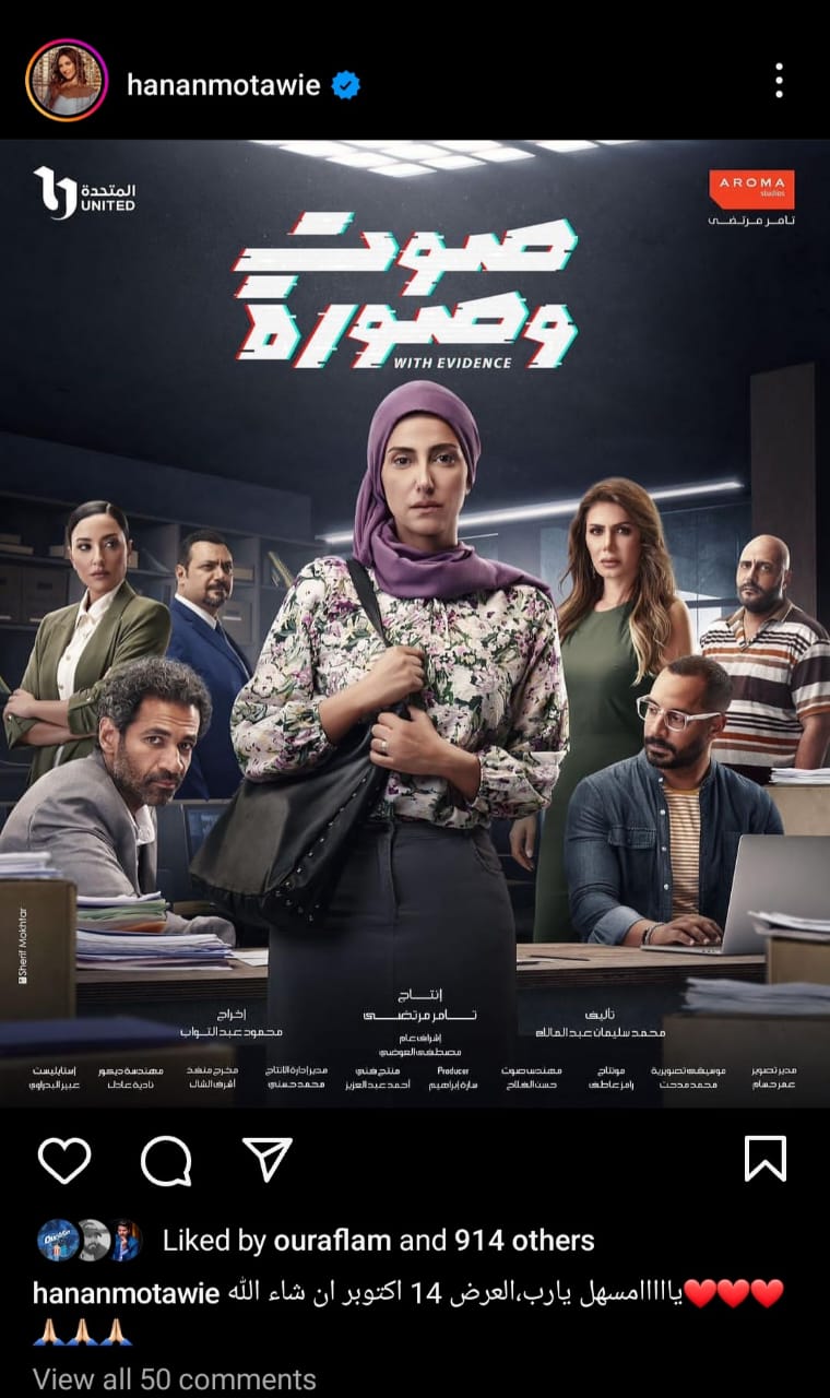 روجت الفنانة حنان مطاوع لمسلسها الجديد"صوت وصورة"، ىحيث نشر البوستر الرسمي للمسلسل،وذلك عبر حسابها الخاص بموقع تبادل الصور والفيديوهات"انستجرام".
