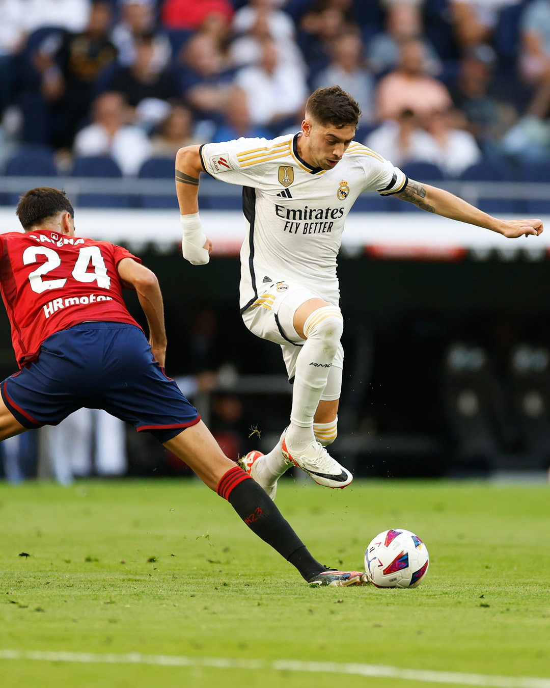 الريال ضد أوساسونا.. سجل الهدف الأول خوسيلو في الدقيقة الـ 17، وعاد تشوميني وسجل الهدف التاني للمرينجي فى الدقيقة الـ 21 من عمر الشوط الأول، وفى الشوط الثاني ومن تسديدة قوية يحرز بها جود بيلينجهام الهدف الثالث فى الدقيقة ال71 من عمر اللقاء.