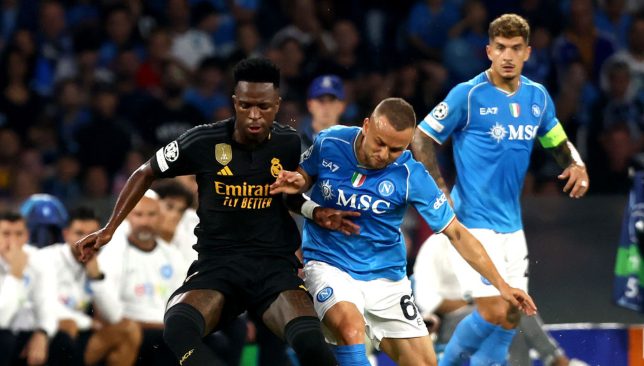الريال ضد أوساسونا.. وسجل نابولي هدف التقدم في الدقيقة 19 عن طريق اللاعب ليو اوستيجارد، قبل أن يتعادل فينيسيوس جونيور لريال مدريد في الدقيقة 27.