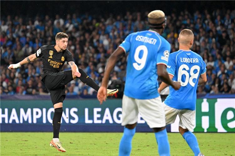 الريال ضد أوساسونا.. وبتلك النتيجة، رفع نادي ريال مدريد رصيده إلى 6 نقاط في صدارة ترتيب المجموعة، بينما تجمد رصيد فريق نابولي عند 3 نقاط في المركز الثاني.