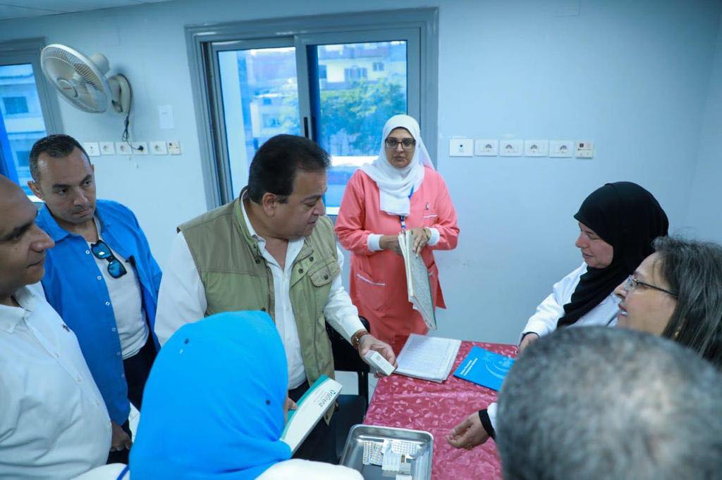 وأشار «عبدالغفار» إلى أن الوزير اطلع على نسب ترددات المواطنين لتلقي خدمات مبادرات الصحة العامة المختلفة ضمن حملة «100 يوم صحة»، فضلاً عن الاطمئنان على توافر مخزون كافٍ من المستلزمات الطبية اللازمة، مشيداً بمؤشرات آداء الحملة في المحافظة.