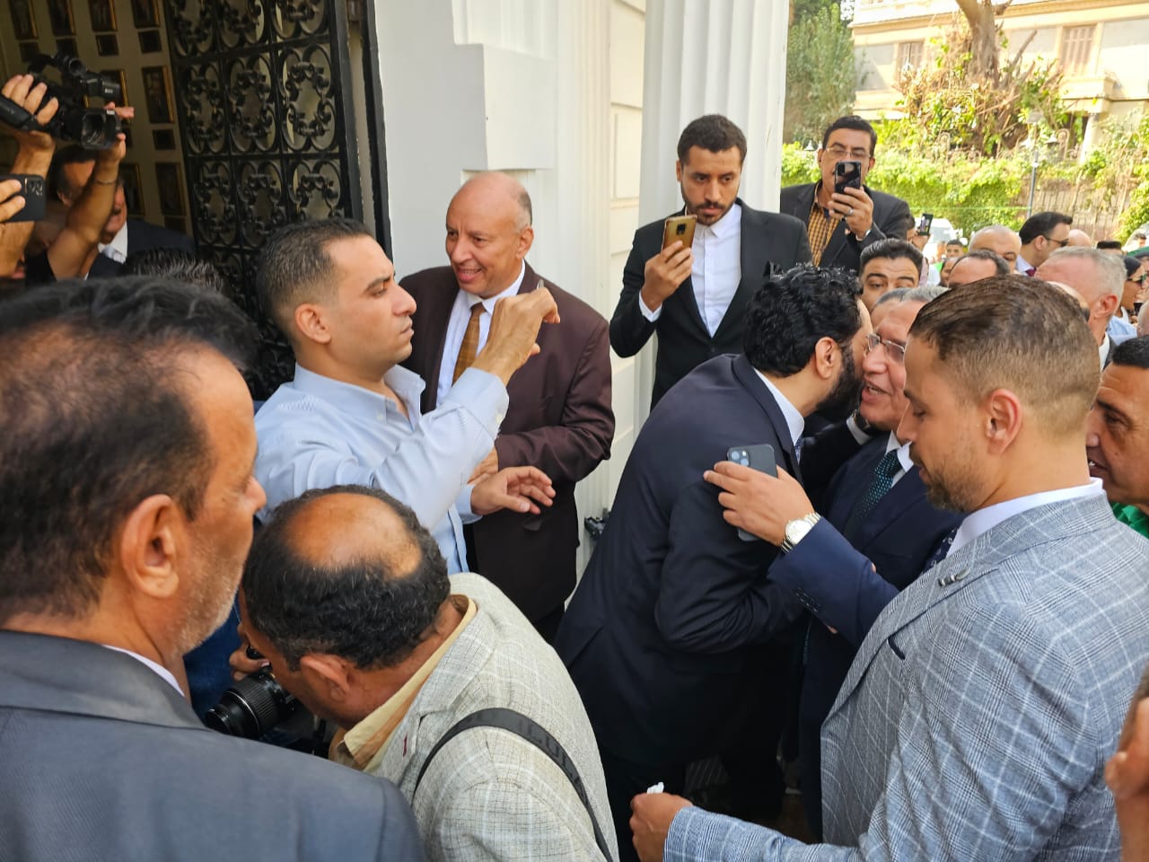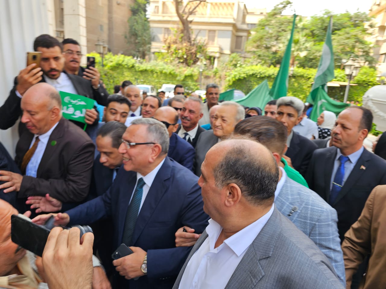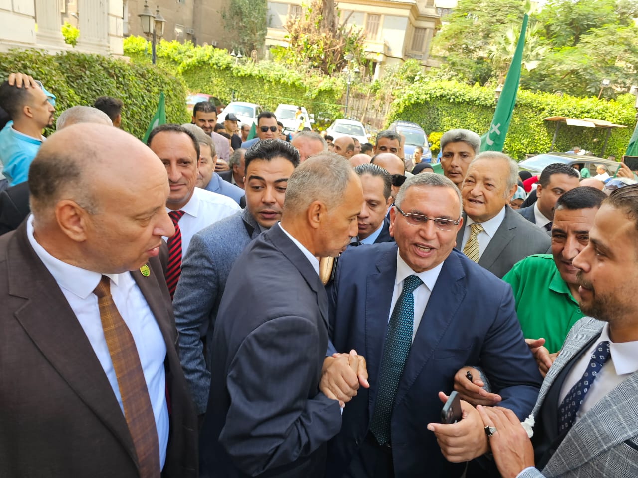 الوفدييون يستقبلون المرشح الرئاسي عبدالسند يمامة بالهتافات وأعلام الوفد بمقر الحزب