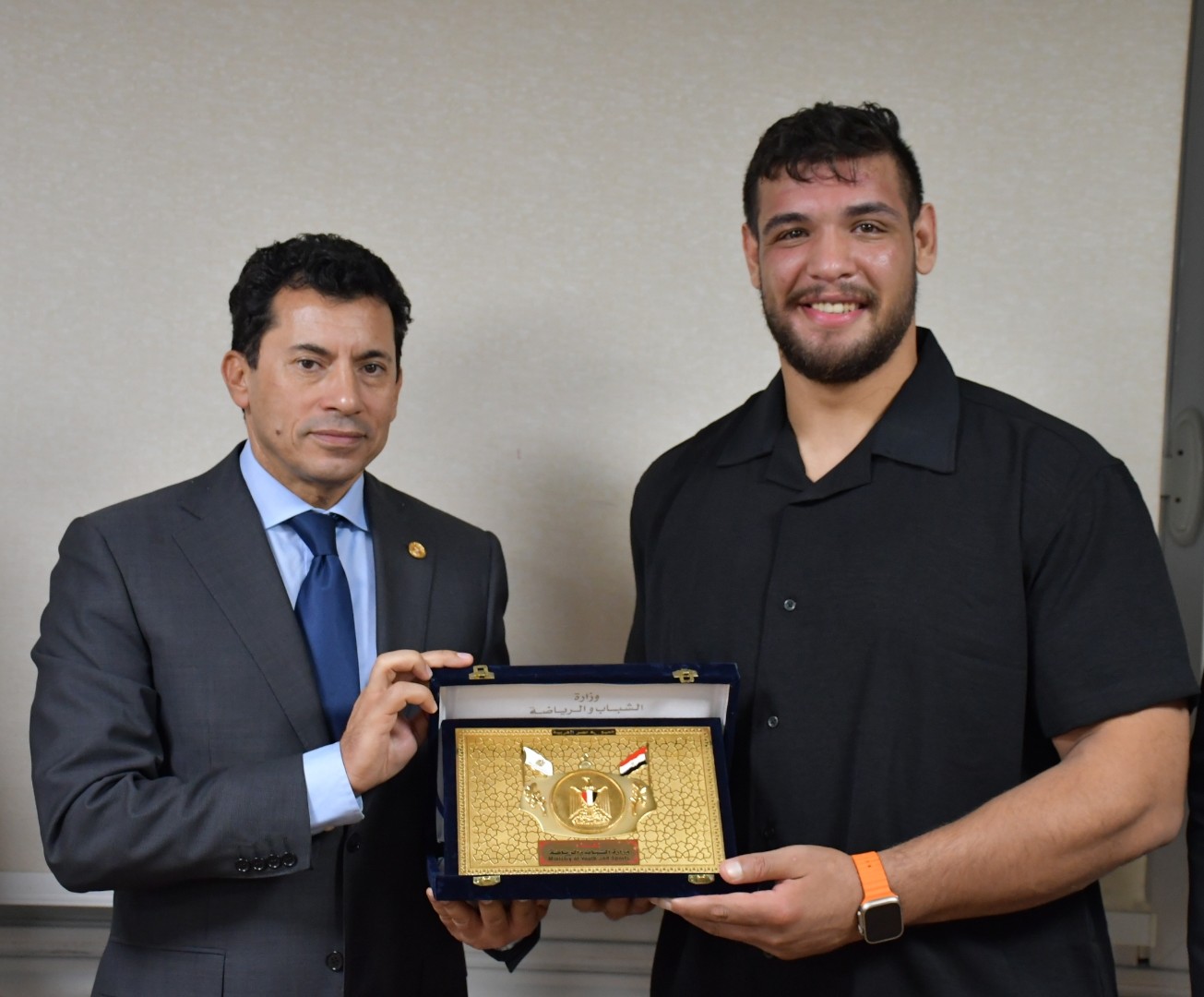 وزير الرياضة يكرم البطل المصري عبد اللطيف منيع لاعب المصارعة