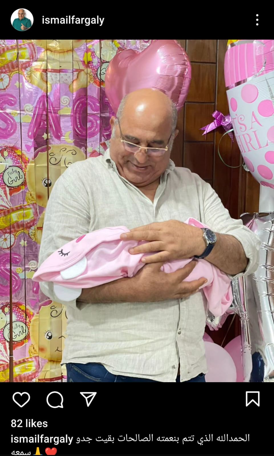 أعرب الفنان اسماعيل فرغلي عن سعادته الشديدة و بعد أن رزق بأول حفيد له، و ذلك من خلال صورة نشرها على صفحته الرسمية عبر موقع تبادل الصور و الفيديوهات “ انستجرام ” .