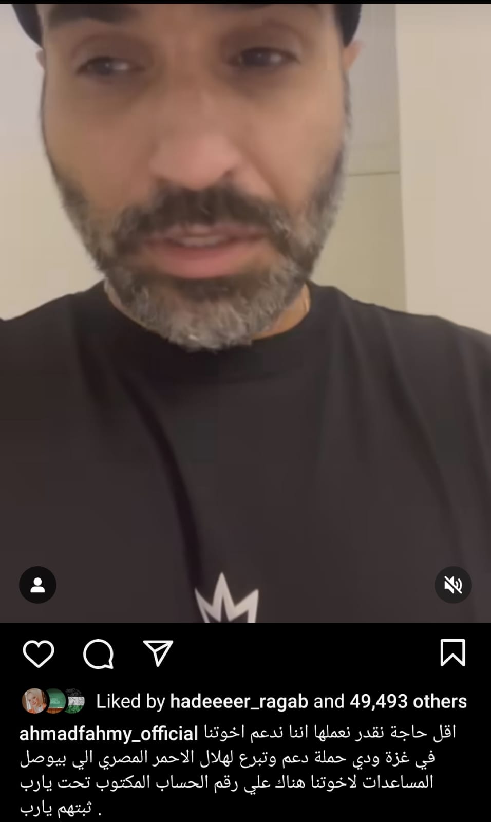و أضاف “ أقل حاجة نقدر نعملها إننا ندعم إخوتنا في غزة، و دي حملة دعم و تبرع للهلال الأحمر المصري اللي بيوصل المساعدات لإخوتنا هناك ” .