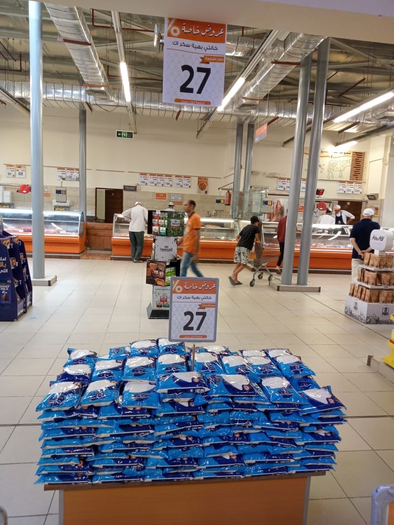 والمكرونة 400 جم بـ7.5 جنيه و مكرونة اسباكتى 400جم بـ 8 جنيهات والشاي 250جم بـ 44 جنيه ودقيق 1 كجم بـ 18 جنيها ومسلي 650 جم بـ 42 جنيه والـ 700جم بـ 48 جنيها و الـ 1.5 كجم بـ 97.5 جنيه وغيرها من العديد من المنتجات الأخرى، مضيفاً أنه يتم طرح الدواجن مجمدة بسعر 85 جنيها للكيلو ، و واللحوم البرازيلية المجمدة بسعر 160 جنيها و اللحوم السودانية بـ 220جنية للكيلو و240 للحوم البلدية الحية .