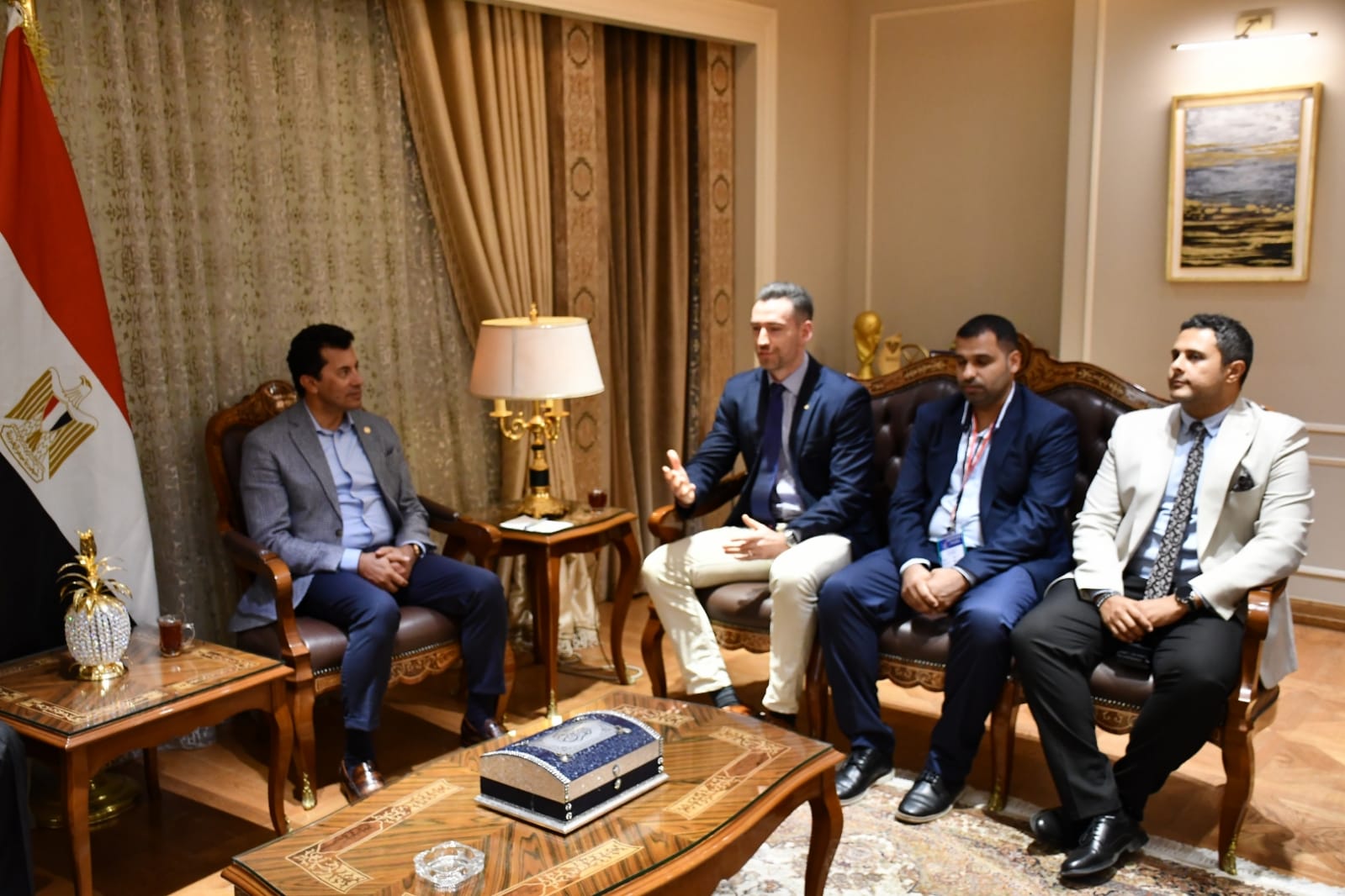 وزير الرياضة يلتقي مدير التطوير بالاتحاد الدولي للريشة الطائرة بالعاصمة الإدارية الجديدة